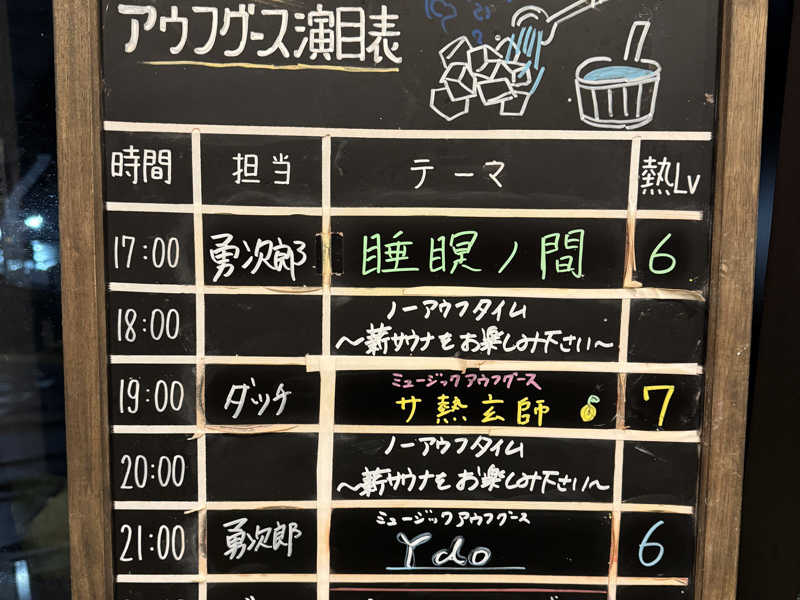2時間プランで全てのサウナを楽しみ、20時と21時のアウフグースにも参加。慌ただしくも充実したサ活だった。