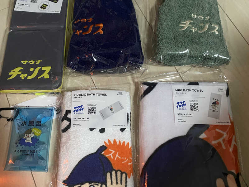 サウナハット、サウナマット、タオル、コインケースを買い、