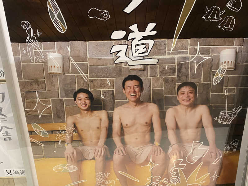 黙浴サ活の看板!なかなか静かにしているではないか。と思いきや若者グループ襲来!ヒソヒソヒソヒソ会話している😥