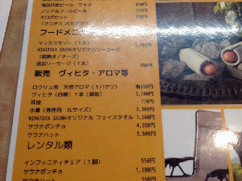 12:00~15:00回を予約。ついたのが10分前。ネットで精算済ですが、アロマロウリュ代とインフィニティ椅子、ストーブで焼くウインナー代加算2000円笑