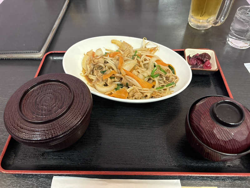 晩飯は生中と、とりあえずランキング1位の豚スタミナ定食をキメました🌱