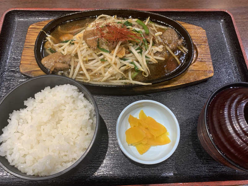 サンマ定食にするか迷ったけど、明日に備えてスタミナ系を選択 もう少し豚肉欲しい