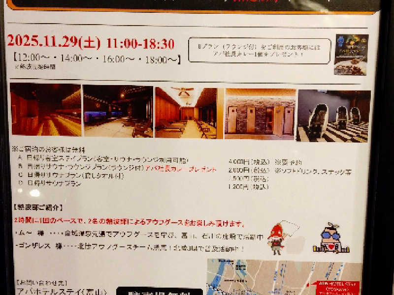 HATのゴンザレスさん、金城温泉のムーさんによる16時、18時の部に参加。北陸の施設で何度か受けた方です。安定のタオルさばきと外気浴中の扇ぎサービス。こういうのでいいんです。本当にありがたい。