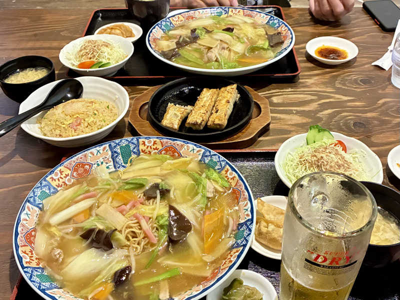 サ(10分×4)+♨️で1時間40分 めちゃくちゃ空いてるし、露天風呂(38℃)が気持ちいいー めいりんの湯からの、たかなべギョーザは神ルーティン!整った!!
