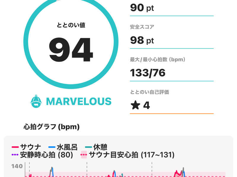 サ室は安定して94℃くらい。外気浴は肌寒くなってきたからかインフィニティチェアがずっとあいてる状態でした。