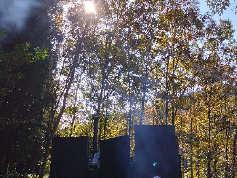 18時のエイキチさんによるソロウィスキング。カウンセリングから始まり、白樺・オーク・メイプルのウィスキング。ウィスクが心地良く、全身が森の香りと蒸気に包まれる。水風呂クールダウン後は焚き火前で休憩。炎の揺らめき、見上げる木々と夜空でバチバチにととのいました〜。レモングラスと紅茶と生姜のホットティーとドライフルーツが五臓六腑に染み渡りました。