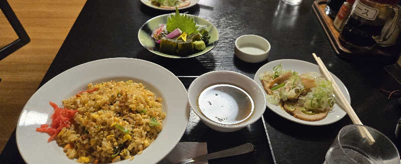 食事スペース待ち時間30分程でチャーハン、ネギチャーシュー、サスのこぶ〆を注文。