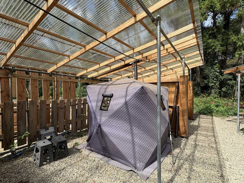 一言:初テントサウナでこちらへ。自身で薪の追加調整とロウリュ位なので初でしたが、楽しくできました。川への導線もすぐで、温度は低くなかったですが、川の中でゆっくり整えれました!誰も他にお客さんいなくて貸し切り状態^_^