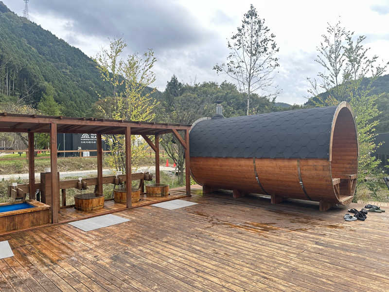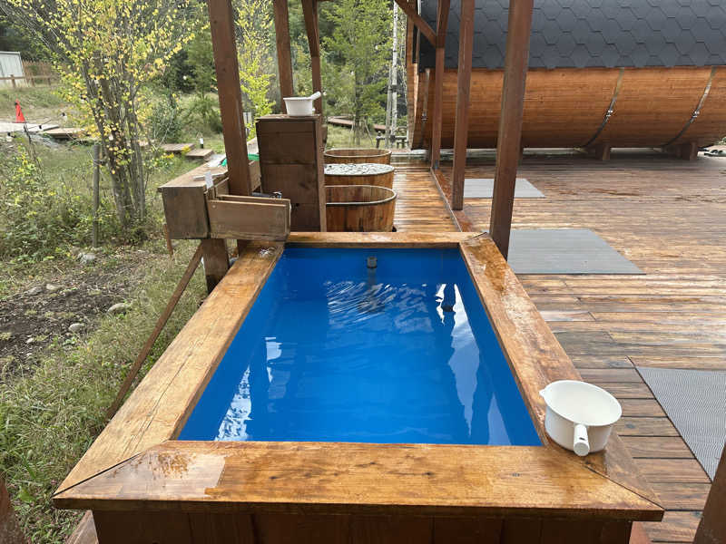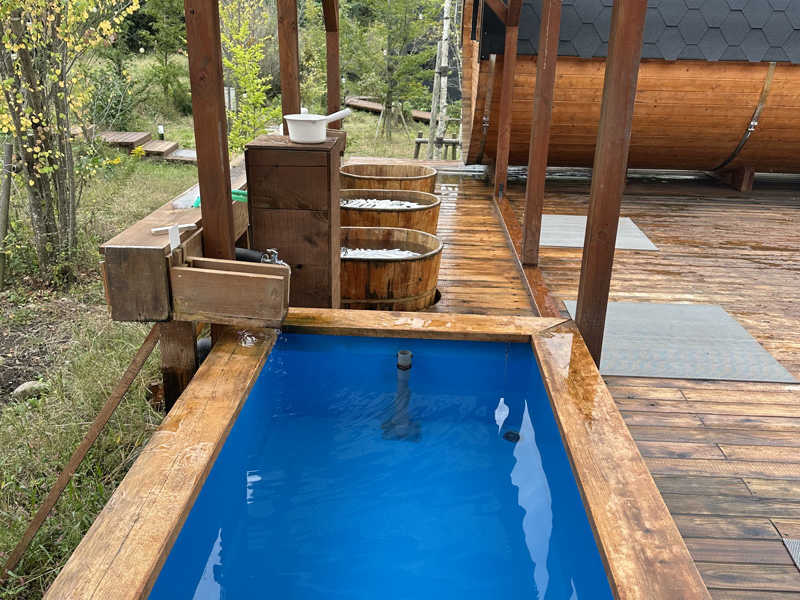 なにしろ景観、気候が良く静かな森の中で外気浴してるようでした。紅葉も見頃でサイコーなととのいを味わえました。デッキの上にインフィニティチェア2つあり、その他にもイスが3つあるのでちゃんとサウナーの心を掴んでいる施設です!