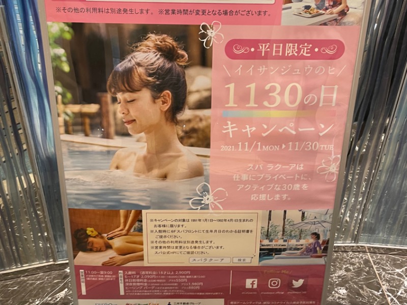 スパラクーアが11月いっぱいまで30歳限定で平日の入館料1130円になるキャンペーンやってるよー!!!60%オフだよー!!!!!