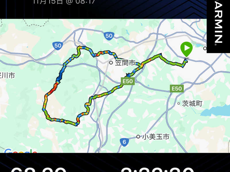 今日のワークアウト🚲は喜楽里発着で常陸大宮まで行ってぐるりと周回