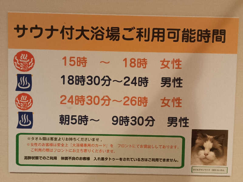 熊谷は年に3回ほど大きなお仕事があり宿泊。ココは宿泊者のお風呂とサウナなので空いててゆっくりサウナと水風呂が楽しめました。女性にはタイミングがあまり良くありませんか男性に焦点はあっています。熊谷てお泊りの際にはオススメです。