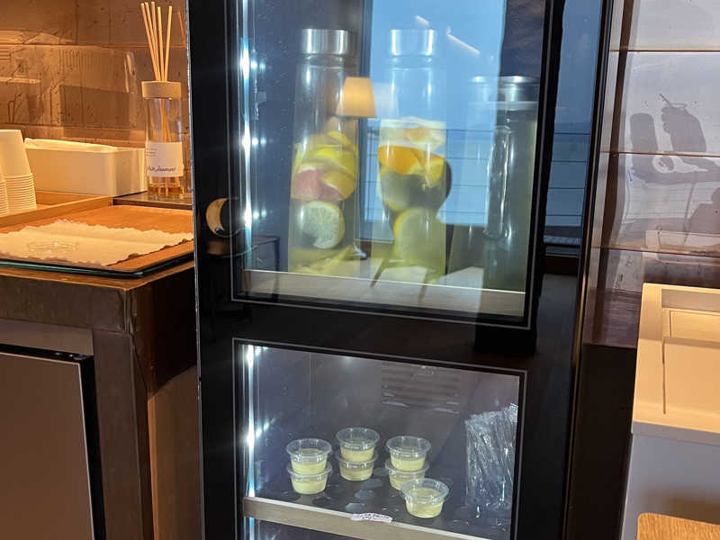 3つのサウナとも入り口に荷物入れと麦茶が設置されていました。