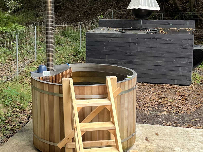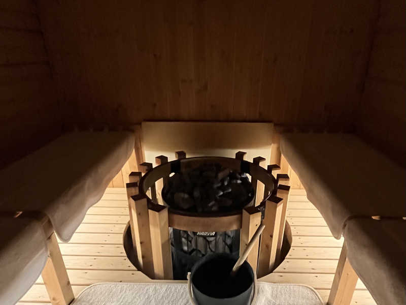 バレルサウナは狭い分、出入りの際に熱気が外に出てしまいがちですがこのサウナは二重扉構造になっていたので、ずっと高温を保てていました。