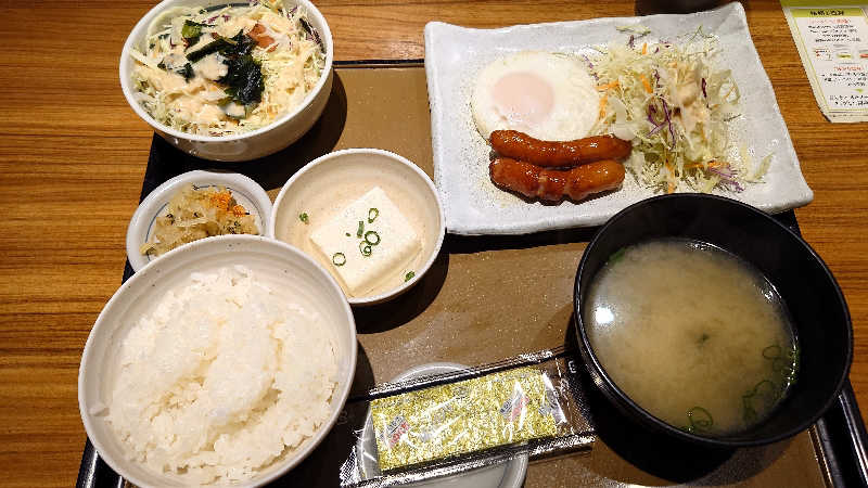 明太子は売り切れ。野菜サラダつけた。本日はパフォーマンス今ひとつ