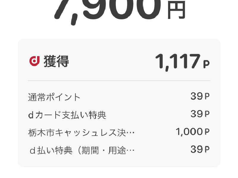 d払いで買い、今回は栃木市のキャッシュレスキャンペーン還元で20%バック👍