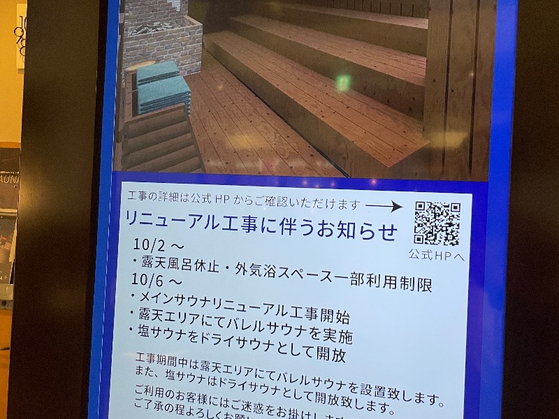 「メインサウナは11月まで工事のため不可」