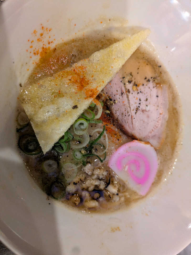 紫かピンクか綺麗な色のリーゼントのお姉さんが一人でやっておりラーメンが出てくるまで時間がかなりかかっていたが、めちゃくちゃ声掛けてくれるし、帰りしなには外に出てきて年末の挨拶までしてくれるなんて、、「めっちゃええやん」と癒される。また来よ。