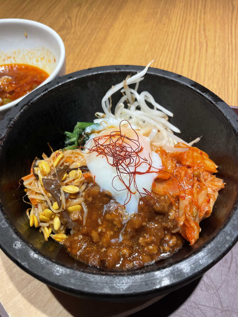 石焼きなので熱々のまま食べられて最高!ユッケジャンスープも美味しかった〜