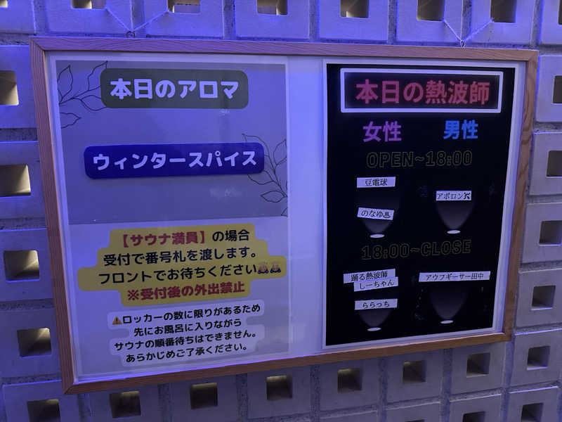 プレオープン時に入った「毎日サウナ 越谷店」。そろそろ1周年に迎えそうとする今頃だけど、行きたくなって行ってきた。スペースが少し広くなった。暗めの内気浴スペースがあってそこが一番落ち着くなぁ。深く寝ちゃうほど雰囲気や香り(線香を焚いてる)も良き‼️スタッフによるアウフグースももちろん最高!やはり薪サウナはめちゃいい☆焚き火メラメラしてるのを見ても落ち着くし、温度も高めでアッチッチだけど気持ちが良き。相変わらず混んでる!また行こうかな!他に今春、幕張にてオープンする予定「毎日サウナ東京」はすごく気になる。オープン時、必ず大行列だろう…入場制限だろう…。楽しみ。