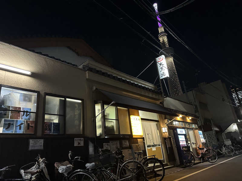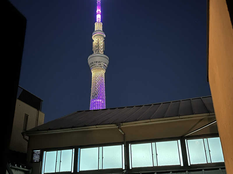 よく行ってた「黄金湯」の姉妹店と言われるけどなかなか行く機会がなく、やっと行けた。たまたま人工炭酸泉の故障により、男湯女湯の日替わりもなく、固定になってたので、男湯は大露天風呂側に。ラッキー🤞サウナ室は驚くほど、狭かったけどちょうどアチアチ…汗もかくし、大露天風呂もスカイツリーを眺めながら浸かることも最高!サウナ3セット、スチーム1セットを整ってきた!2階の外気浴エリアから眺めるスカイツリーもいい!