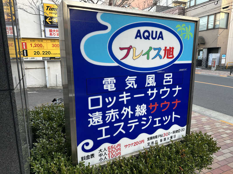 2軒目の「アクアプレイス旭」。そこにも初訪問!入ってみたら、昭和風の銭湯のような感じ。サウナと水風呂は2階。ととのいチェアが3脚しかない!狭いからかな。サウナに入ったら、お爺さん同士のおしゃべりしまくり!うるさくうっとおしい。サウナは黙浴してほしかったなぁ。店主さんに話しても解決にならない。全然落ち着かないため、2セットで終了。サウナで静かに整うならココは向かない。他店に黙浴ルールがあるところがおすすめですね。しかも2階にある整うチェアは1脚しかないのに、30分以上独占する人もいたし。ココはルールがなくて残念。サウナは120度近くあったのに、全然熱くない…ドアを開けすぎなどの理由もあるかも。