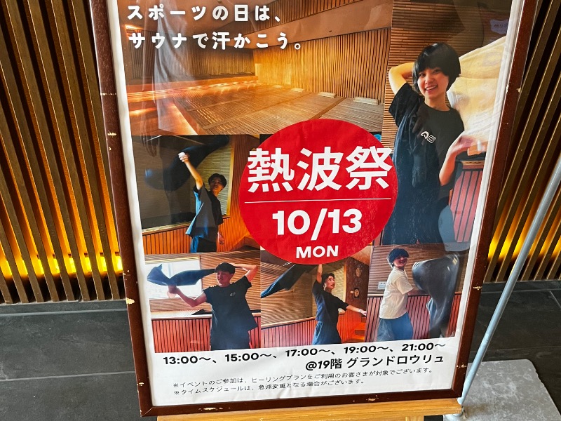 エレベーター上がって、なにやら、スポーツの日なので汗をかきましょう、アウフグース!と。