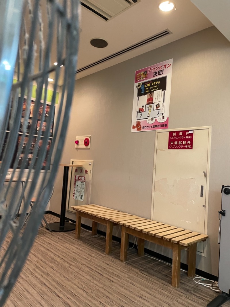 ベンチ前のスプリンクラー制御弁の扉が勝手に開いて整いを阻害されるけど緊急時を想定してすぐ制御弁操作でいるように気配りしているニコー設備に💯