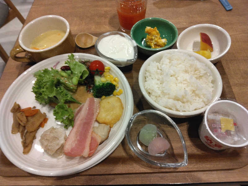 🈂室は向かい合って座るタイプで、一番奥にセルフロウリュウできるストーブが鎮座。片側は2段で、もう片側は1段。私は当然毎回2段側🙋。朝からバッチリ🔥…というか、夜よりも人の出入りがない分、熱く感じます。昨日から誰もセルフロウリュウしないので私ばかりやってます(毎回実施)。サウイキの投稿でラドル🥄4杯ぐらいが調度良い…とありましたので実践。なるほど的確です。そして水風呂が13.5℃🥶!(昨晩は15.5℃でした)。こんな都会でも外気浴できるように工夫されたととのいスペースあり。さすがサウナが売りのホテルです。