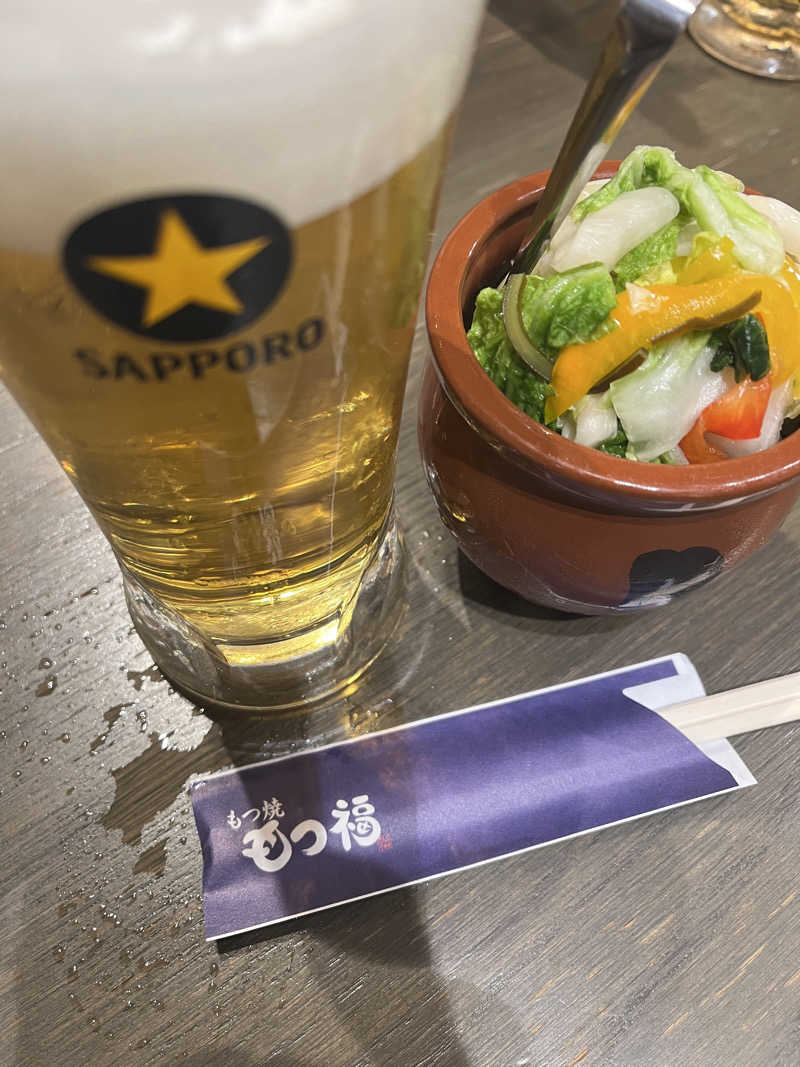 お通しが漬物!うれしい!もつ焼きはデカくて美味しかった!
