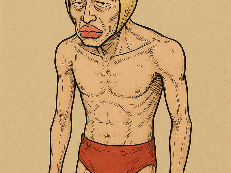 どうやら赤いレスリングパンツを履こうとしているのだ