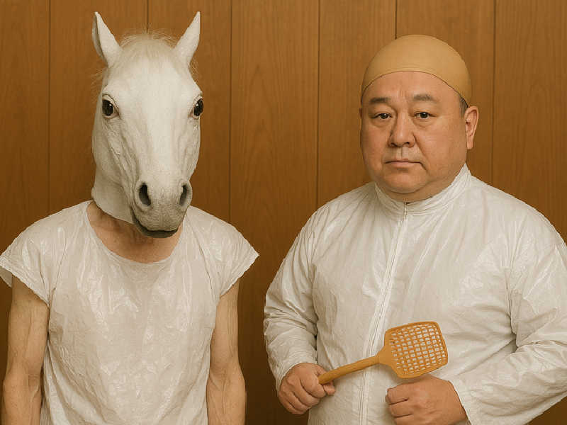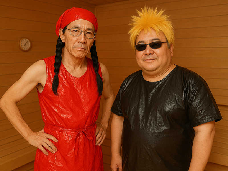ロデオ先輩が今日も暴れ牛を乗りこなし、日本舞踊ニキがタオルを咥えてセクシー舞踊を披露でフィニッシュ