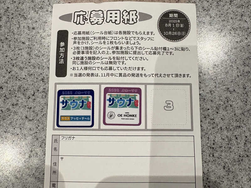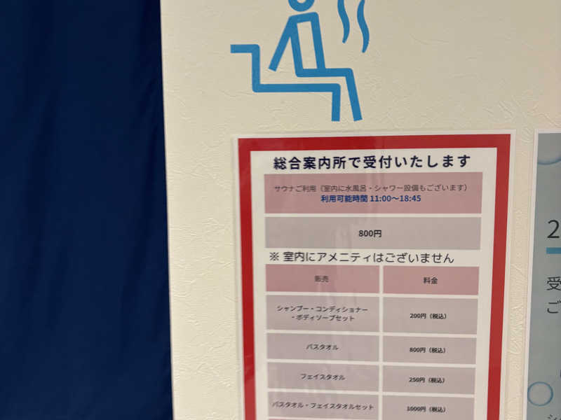 そして、サウナの受付にて入場するに当たっての最低限の持ち物を確認して車に戻って必要な物だけ持って、再び受付へ。