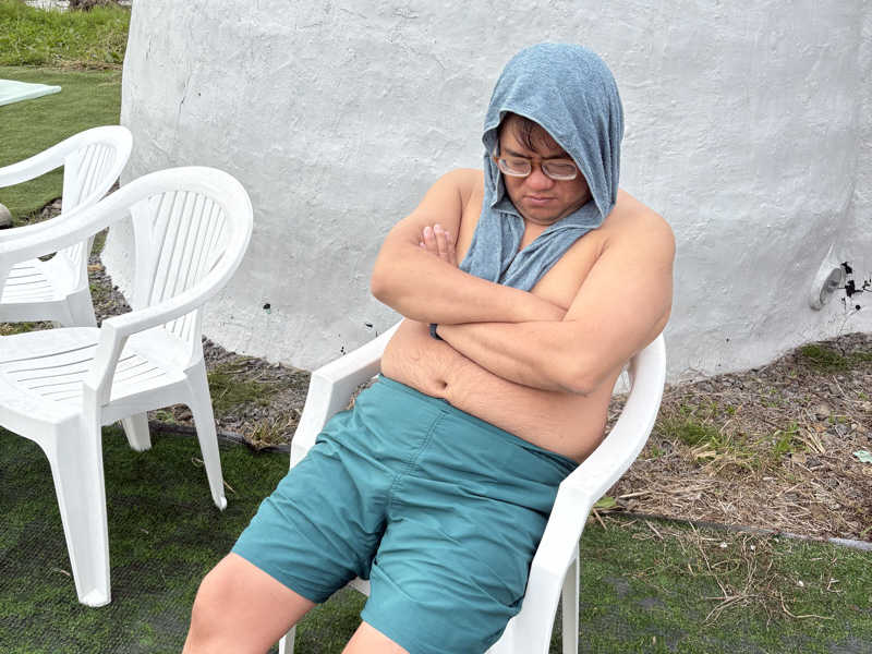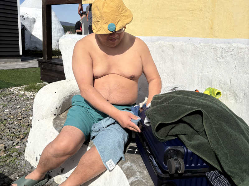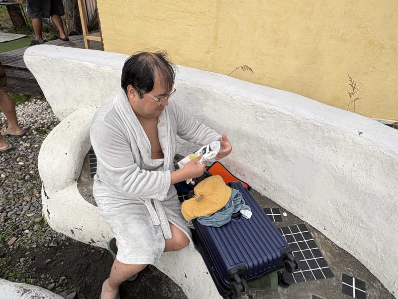 浴場内に椅子1脚あるのではじめの1セットはそちらで休憩するも、脱衣所の方が涼しくて扇風機もあるので2セット目3セット目は脱衣所休憩。