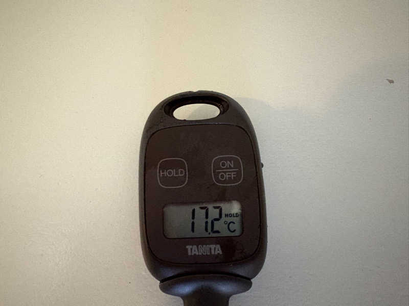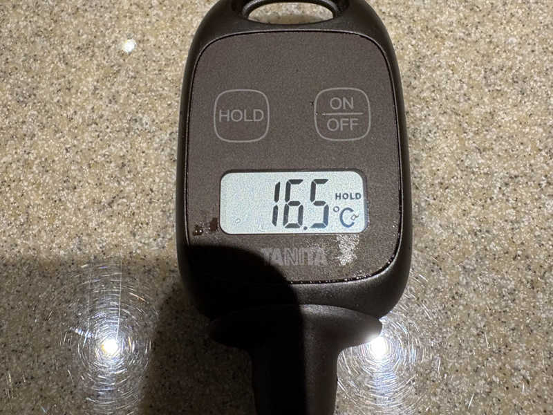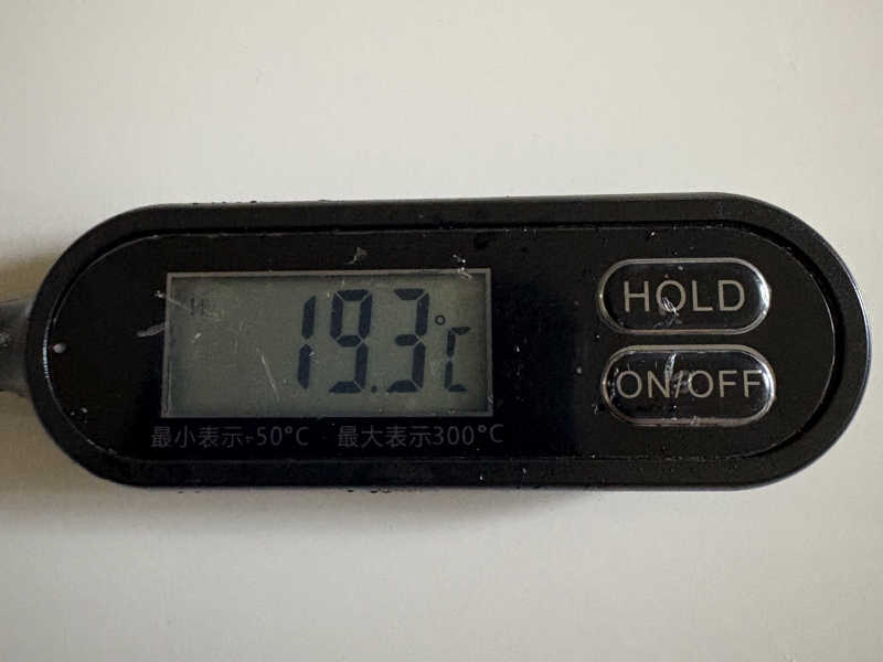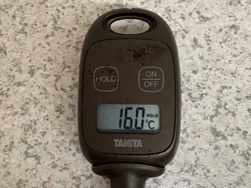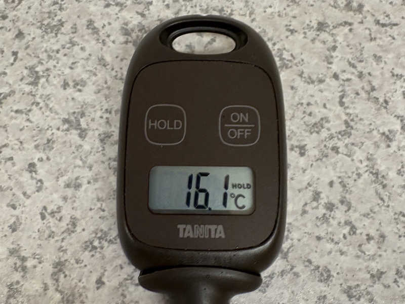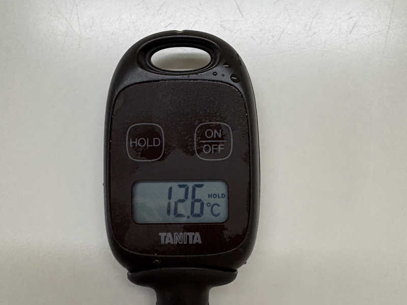 ずっと蛇口から水が出ているので期待して最後測ってみると12.6℃としっかり冷たくて1分が長く感じました。