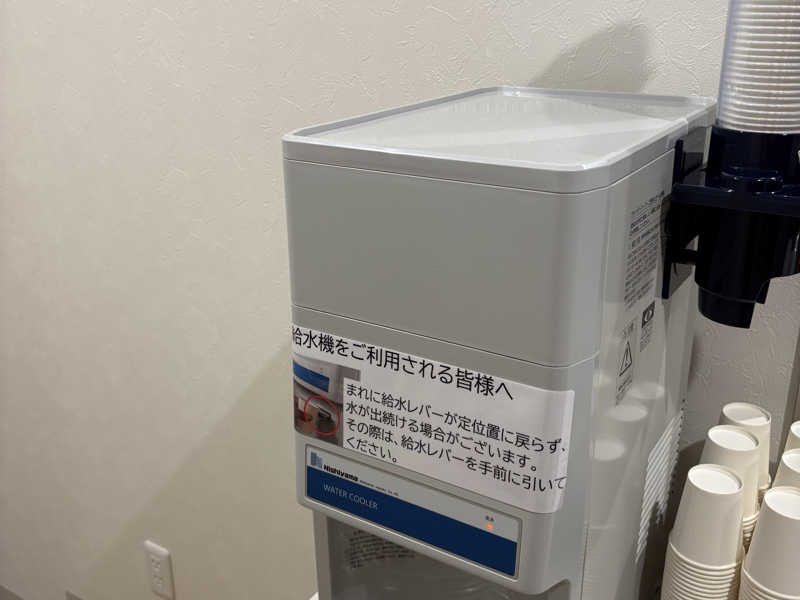 上がって、飲食スペースにあるちょっぴり古めのホシザキのウォータークーラーの水を飲んだらホシザキコールドウォーターディスペンサーばりに冷たくて美味しい水でした。