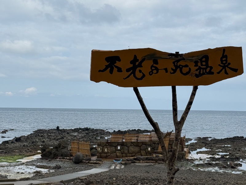 日本海に沈む夕日が売りとのことだが、うろうろしてるうちに到達は真っ暗な夜!ということでなーんも見えなかった夜を終え朝。 待っていたのは広い日本海と谷地頭と同じような色の温泉が流れ込んでいる場所が!あそこがあの日本海にある温泉か! サウナ水風呂さくっとして一旦着替えてからの外の温泉へ… すんげーですここの温泉♨️熱めなので外気浴との温冷交代浴で。暖かくなってくるとブヨ🪰とかすごいらしい…おすすめは3月ですかねーまだ無視さんはいませんよー 心の洗浄完了です。