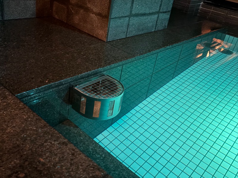 キンキン側は昭和世代学校プール消毒槽浸かる時みたいなタイプで階段降りるんよ(゚ω゚)