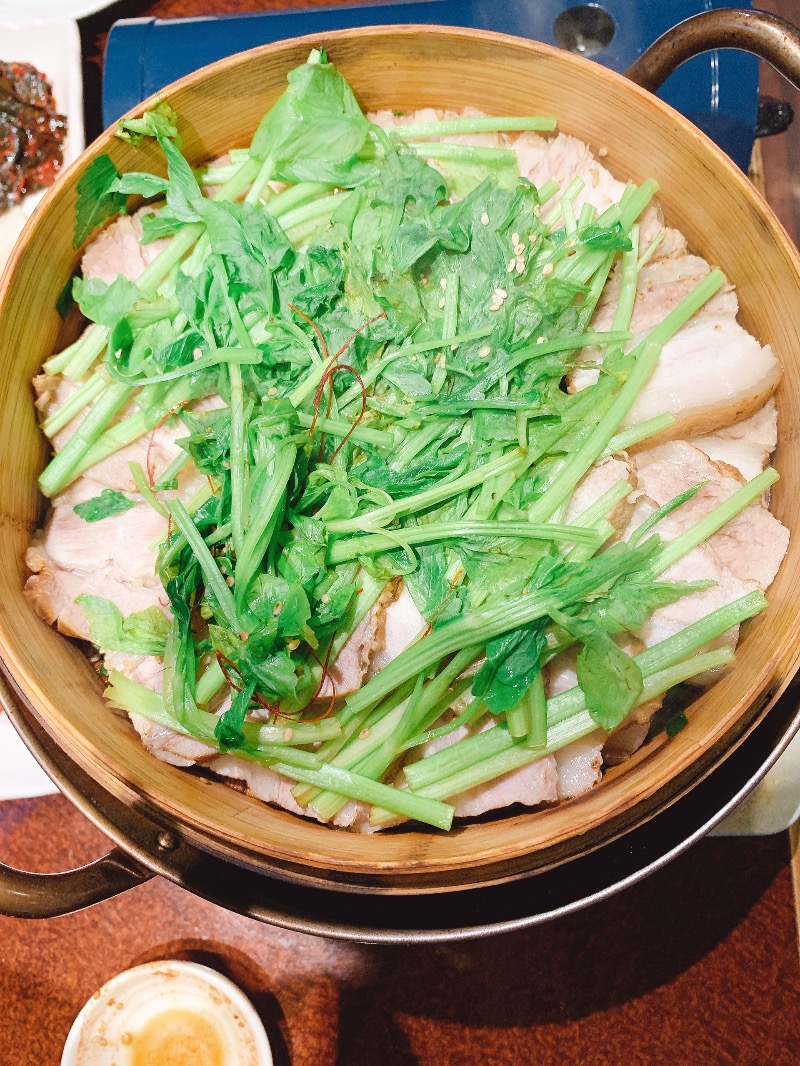 サ飯は新大久保韓食堂でミナリポッサムとかミナリチヂミとか牡蠣キムチをつまみにマッコリを1人ボトル1本くらい飲んだ🐷🦪