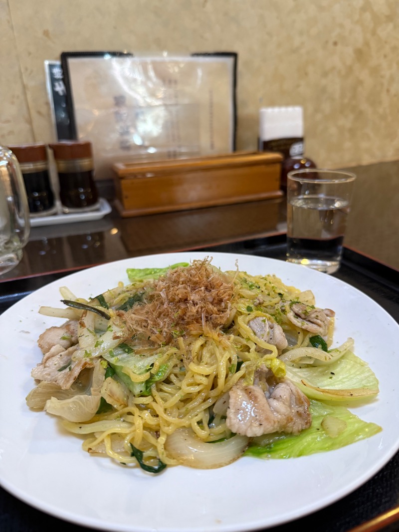 今日の注文は、グラスビール、メガレモンハイ、ほうれん草、餃子、焼き鳥、塩焼きそば。