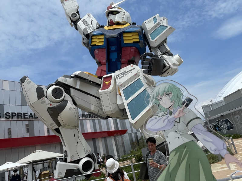 万博で歩き疲れて休憩中に寝そうになってましたw
