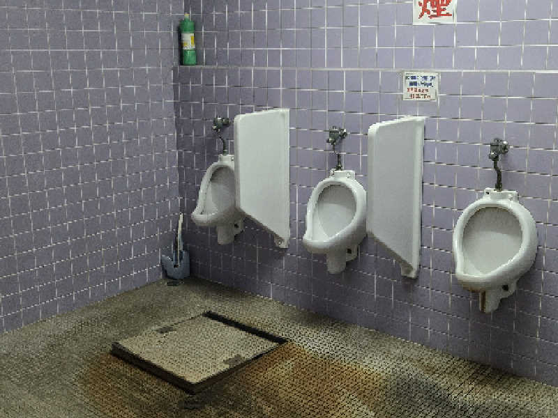 小便器部屋は床の点検口が少し開いていて、
