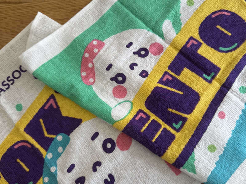 湯の楽さん今日は男性が高温サウナの日やっぱり高温が至高。受付でタオルをもらう、今年もラベンダー柄のゆっぽくんタオル!
