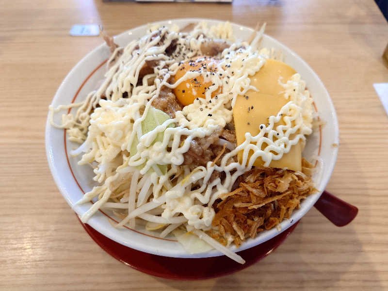 麺量200g、ヤサイマシ、アブラマシ、チーズ・マヨネーズトッピング