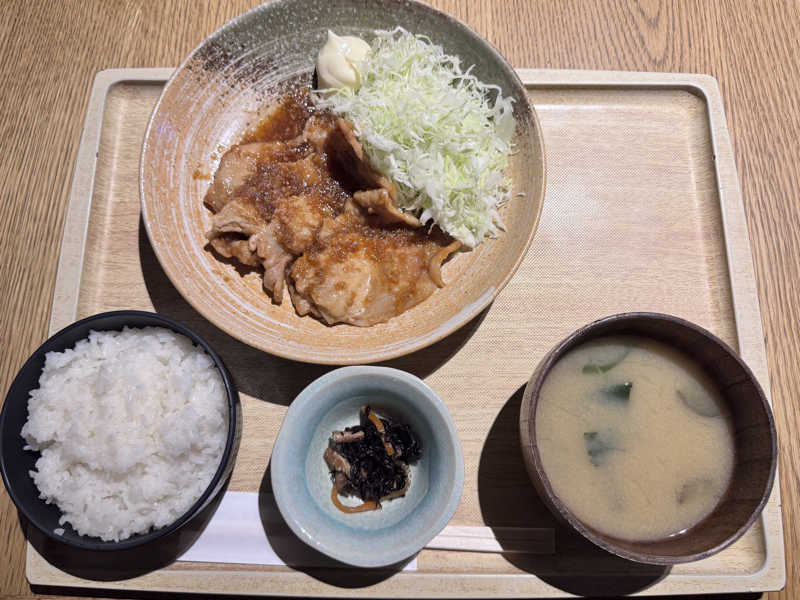 本日のサ飯は生姜焼き定食とタコの唐揚げ。