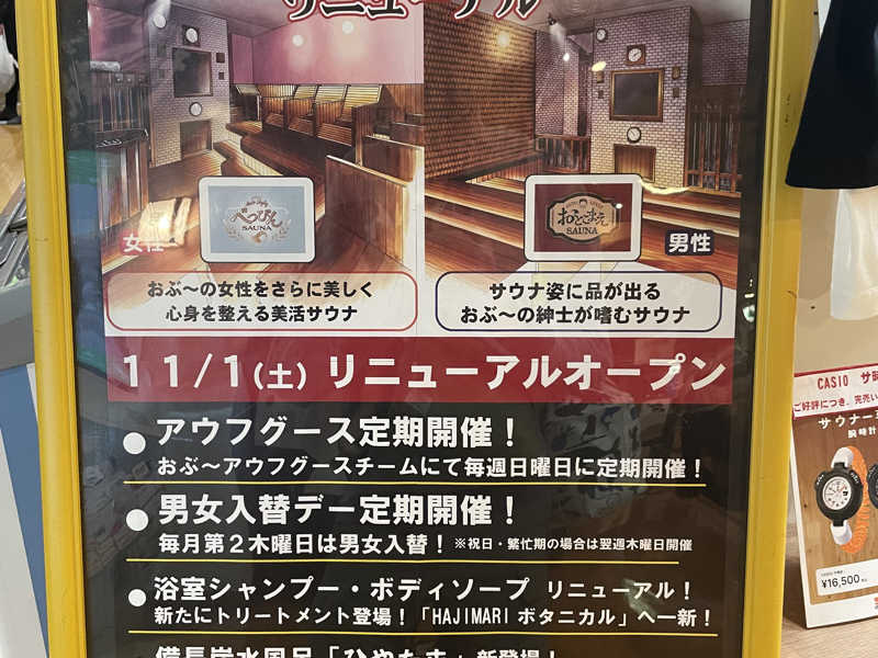 本日は支配人のレッドウィングテツさんの熱波イベントが20:00と21:30にあるとサ室扉に告知ありました!が…時間合わず参加は叶わず😢またの機会に👋