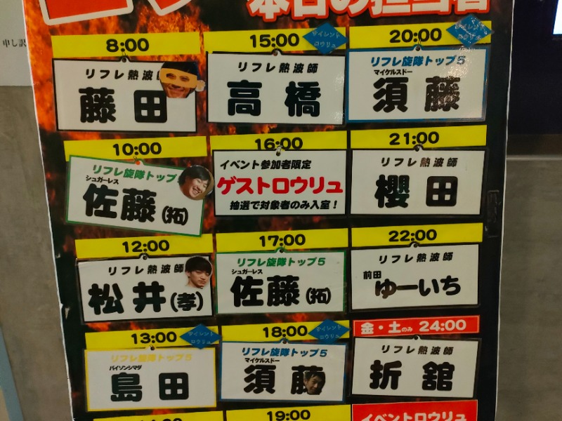 リクライニングでまったりして、あれ?トミー出勤。ロウリュ表に居なかったから休みかと思ったwww