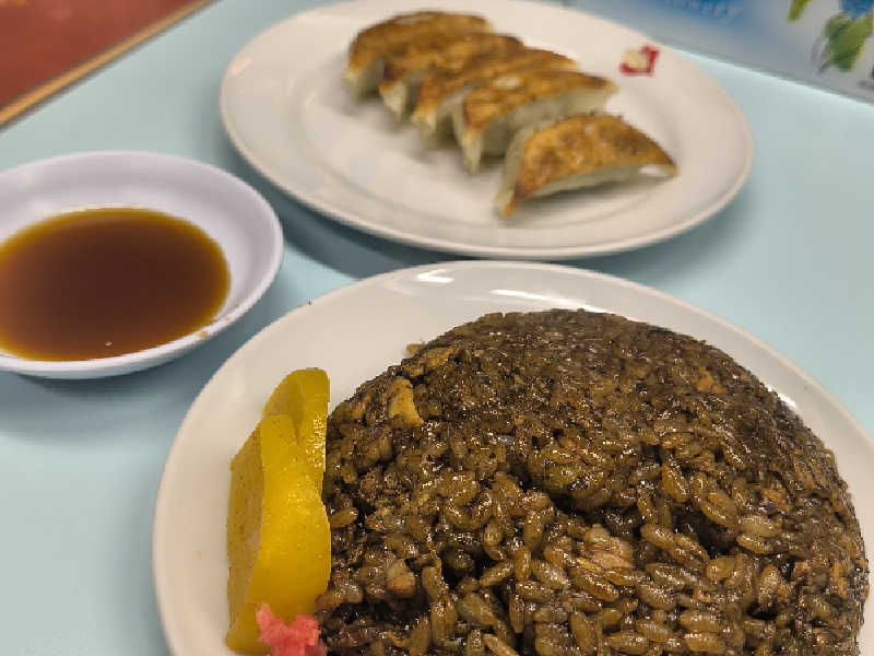 頼んだ餃子(にんにく有)と炒飯(黒)、