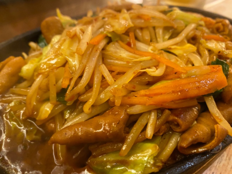 サ飯は、ピリ辛豚モツ炒め 650円。