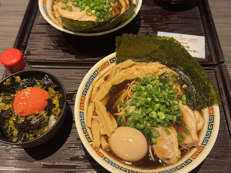 SUSURU監修の醤油ラーメンに高菜明太ご飯。